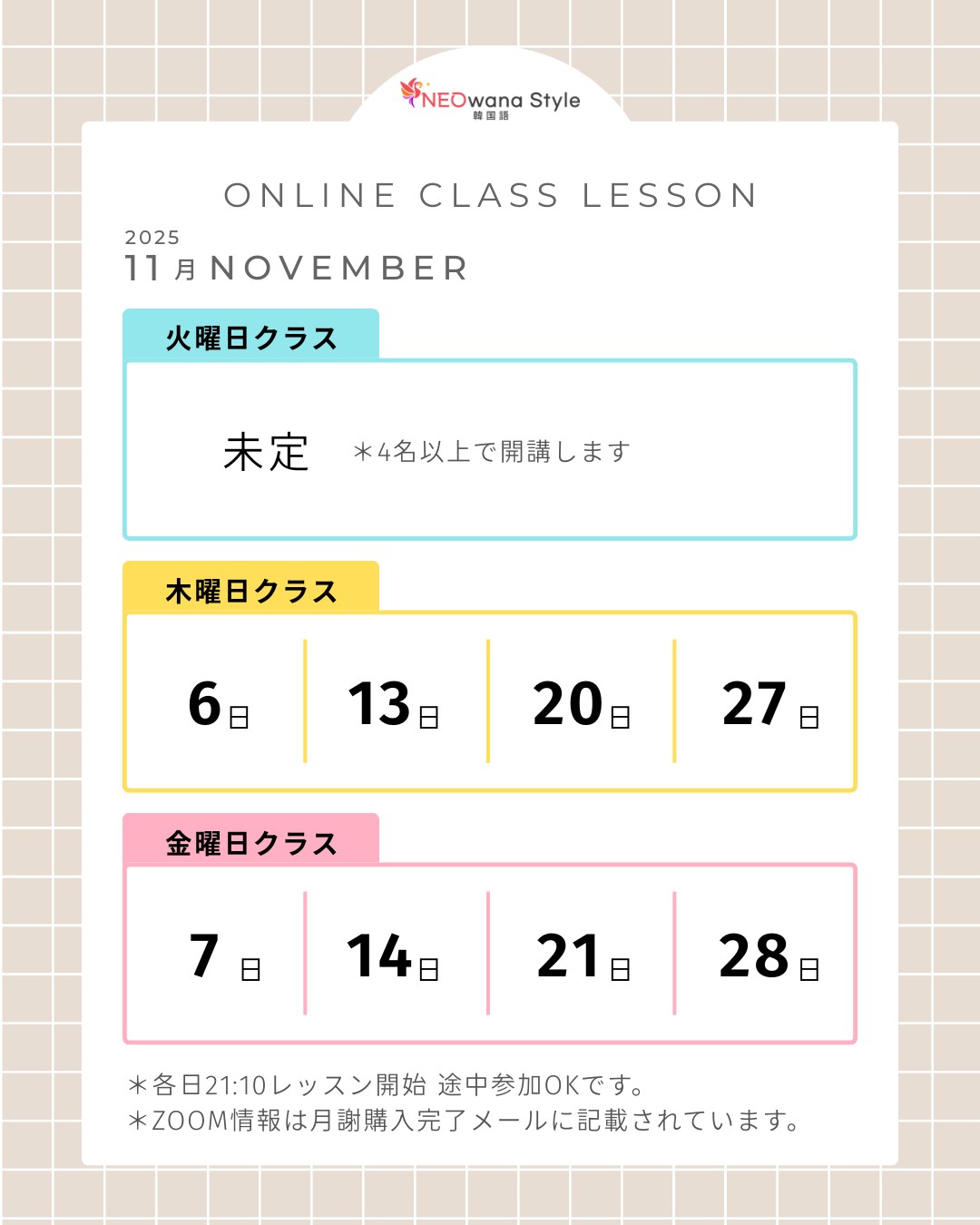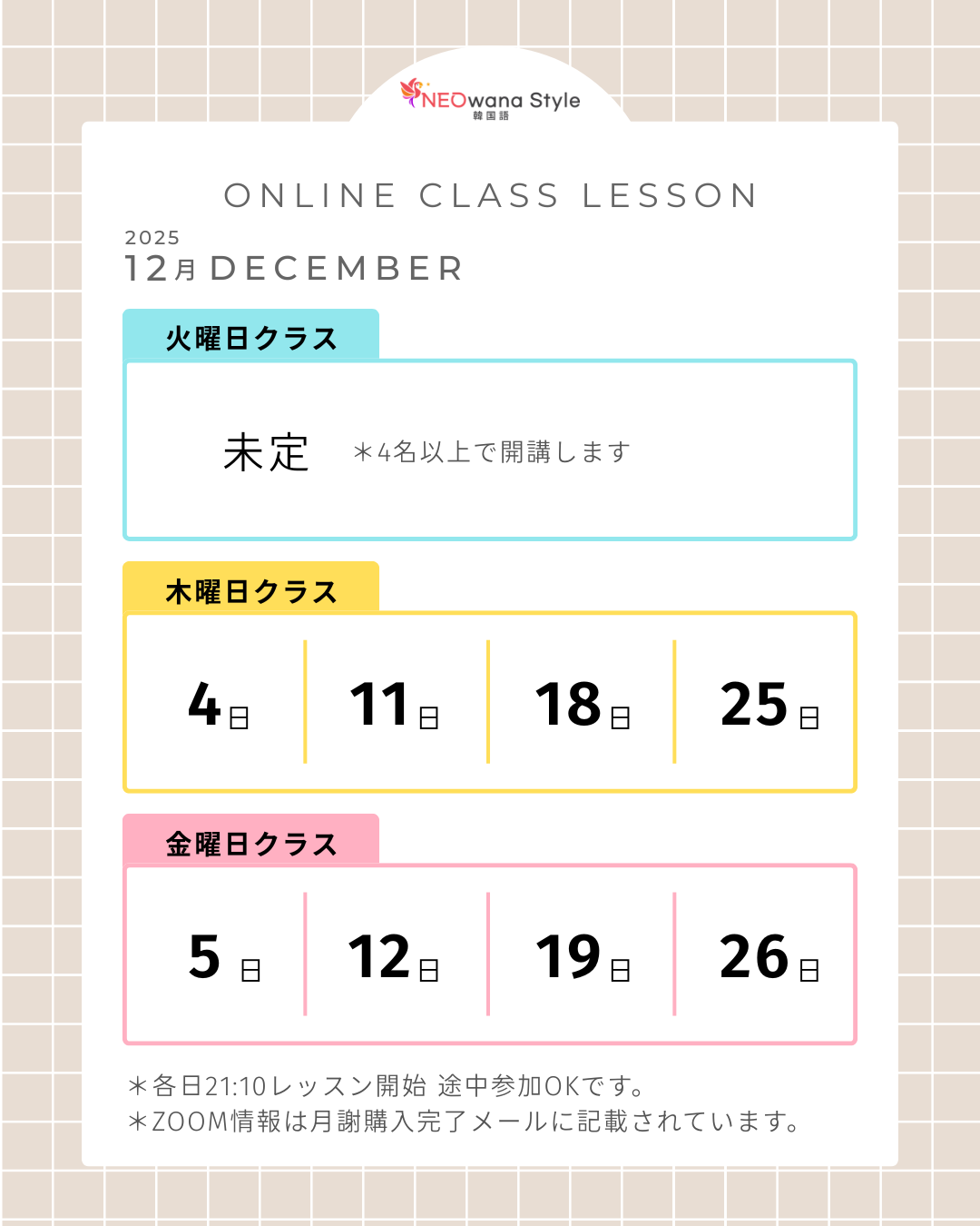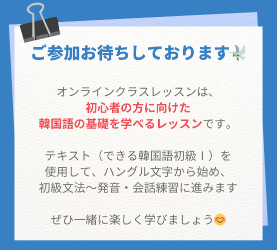 テキストを使用して、ハングル文字から始め、初級文法〜発音・会話練習に進みます。